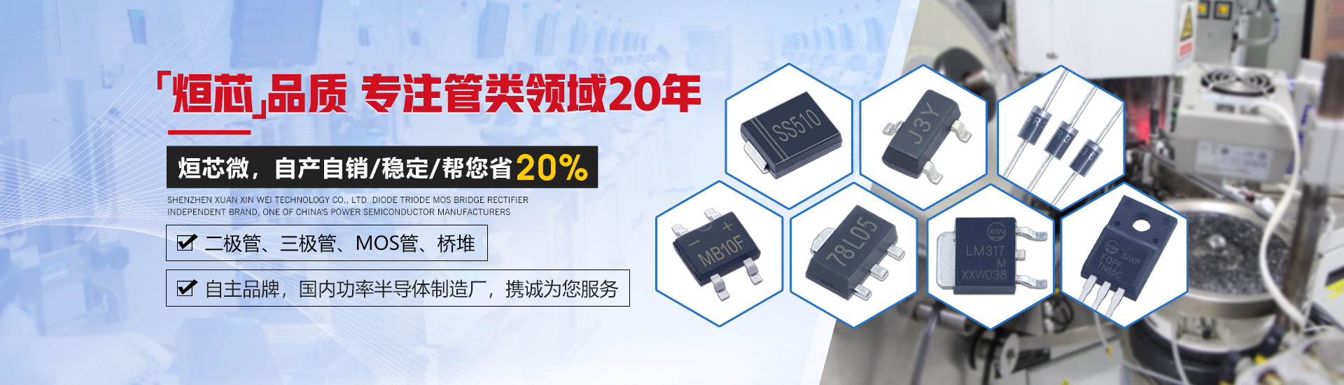 深圳市烜芯微科技有限公司是一家集研發(fā)、生產(chǎn)、銷售于一體,專注于二極管、三極管,MOS管、橋堆等功率半導(dǎo)體領(lǐng)域發(fā)展的企業(yè)。采用國際領(lǐng)先的GPP芯片生產(chǎn)工藝及一心多Die高精密制造工藝,擁有功率半導(dǎo)體器件工程實驗室,全自動高精密生產(chǎn)設(shè)備,產(chǎn)品層層把控,全程可追溯,保障了每只產(chǎn)品的卓越品質(zhì)。 產(chǎn)品封裝包括SMA,SMAF,SMB,SMBF,SMC,SOD-123,SOD-123FL,SOD-323,SOD-323FL,SOD-523,SOD-723,SOT-23,SOT-89,SOT23-3L,SOT23-5L,SOT23-6L,SOT-223,SOT-523,SOT-723,DO-41,DO-15,DO-27,DO-35,R-1,R-6,LL-34,LL-41,TO-277,TO-92,TO-92S,TO-92L,TO-126,TO-251,TO-252,TO-262,TO-263,TO-220,TO-220F,TO-247,TO-3P,TO-264,MBS,MBF,MBM,ABS,UMB,UMSB,DB,DBS,D3K,KBP,GBP,GBU,GBL,GBJ,KBL,KBU,KBJ,KBPC,KBPC6,KBPC8,KBPC-W,DNF,TSSOP-8,TSSOP-16,SOP-4,SOP-6,SOP-8,SOP-10,SOP-14,SOP-16,DIP-4,DIP-6,DIP-8,DIP-10,DIP-14,DIP-16,月產(chǎn)各封裝達6億只。 公司通過了ISO14001環(huán)境管理體系認證,產(chǎn)品均獲得了ISO9001質(zhì)量體系認證、UL、SGS等認證,符合歐盟最新RoHs指令。擁有和致力于烜芯微/XXW自主品牌產(chǎn)品的推廣,提供技術(shù)支持,選型替換,cost down方案及擁有專業(yè)的生產(chǎn)管理團隊和銷售團隊,保證了供貨穩(wěn)定及售前選型服務(wù)等問題。 公司產(chǎn)品廣泛應(yīng)用于開關(guān)電源、適配器、逆變器、控制器、汽車電子、家用電器、通訊設(shè)備、無線充、鋰電池保護板、驅(qū)動電機、安防警報、太陽能光伏產(chǎn)業(yè)等多個領(lǐng)域。取得了國內(nèi)外眾多品牌大廠的認可與合作,我們將堅持奉行“烜芯品質(zhì),誠信經(jīng)營,合作共贏”為公司經(jīng)營理念!竭誠為新老客戶提供優(yōu)質(zhì)的產(chǎn)品及服務(wù)。